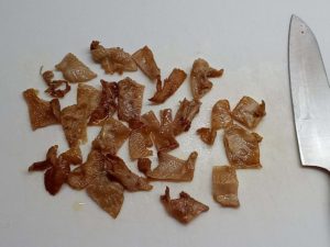 鶏皮を切る