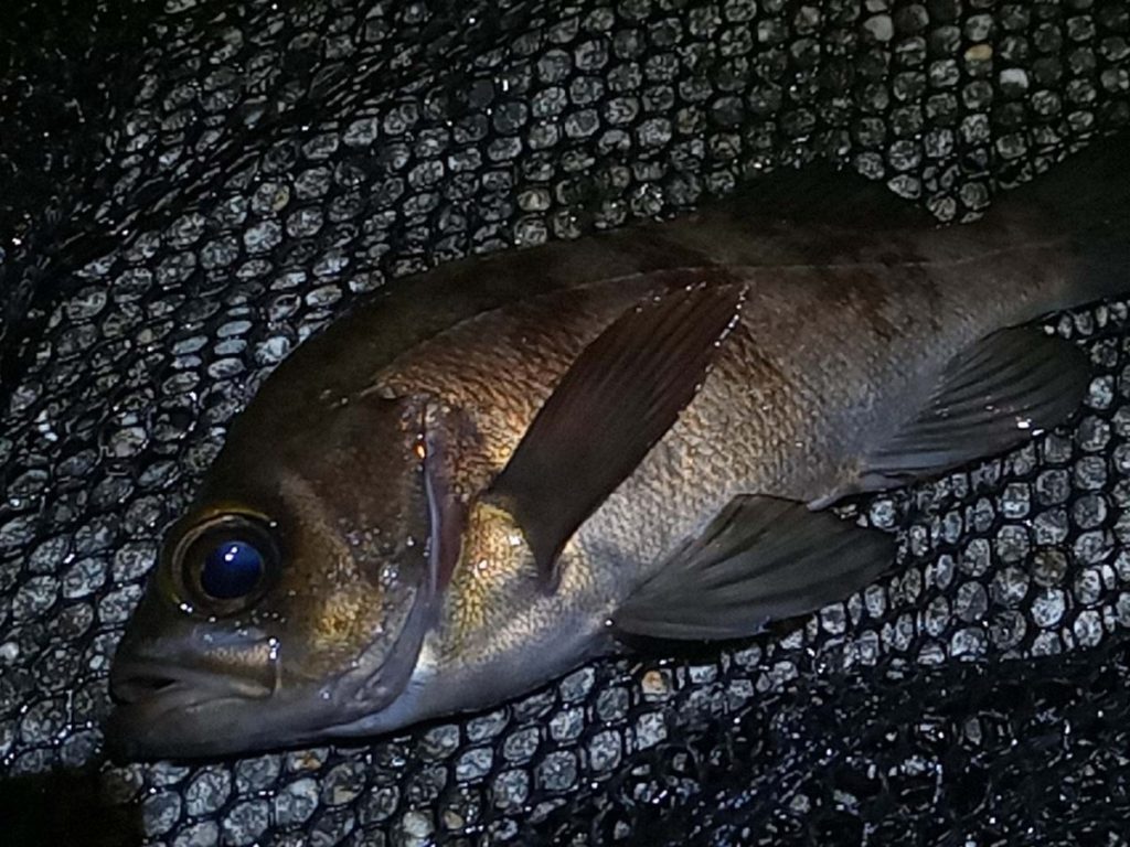 結局この日は3時間で1回だけしかバイトがなく、20cm弱のメバルをキャッチしただけで終わりました。
